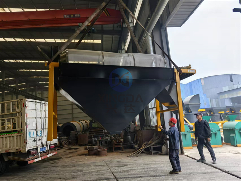 工作人员正在吊装有机肥生产线筛分设备滚筒筛分机:滚筒筛分机是有机肥、复混肥生产中常用设备,主要用于成品与成品与返料的分离,也可实现成品的分级,使成品均匀分类。采用组合式筛网,便于维修与更换,该机结构简单,操作方便,运转平稳。